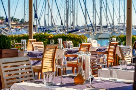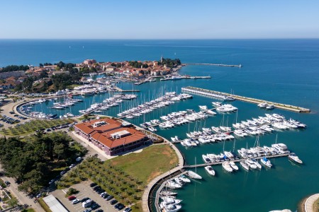 The small and very comfortable hotel is located directly on the marina, about 300 m from the center of Novigrad. All rooms are spacious and tastefully decorated with nautical elements.