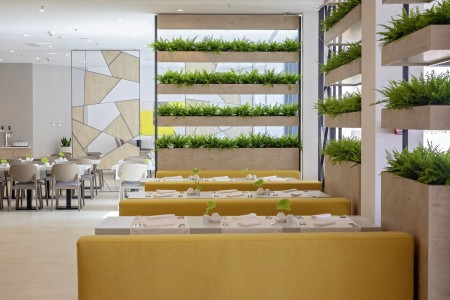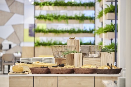 Catering: Breakfast buffet. Half-board PLUS with extensive evening buffet and special buffet for children can be booked for an extra charge. Gala dinner once a week in high season (until the beginning of September).
