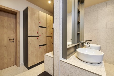 91 suites: each approx. 32 m², modern and comfortably furnished, bedroom with double bed, separate living room with sofa bed (180x200 cm) or two sofa beds (80x200 cm each), air conditioning, safe, minibar (for a fee), telephone, WiFi internet (free of charge), shower/WC, balcony or terrace. Room service available (for a fee). Baby crib available on request (free of charge).