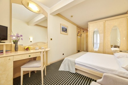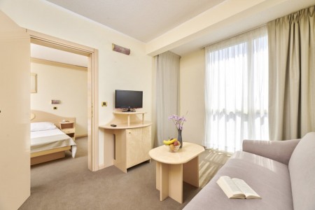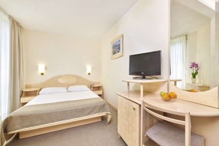 Sport & animation: The resort is home to Croatia's largest sports center - 18 clay tennis courts (four of which are floodlit), 3 Colorset tennis courts, tennis school, table tennis, four grass soccer pitches, large sports hall, four squash courts, fitness center, bocce courts, basketball, volleyball, mini golf, bicycle rental, horseback riding, paddle, pedal, sailing and motor boats, water skiing, parasailing, banana boats, diving school and much more. In the high season, the resort offers various entertainment programs for all hotels - children's entertainment, sports entertainment with aerobics and various tournaments, as well as evening entertainment with shows.
