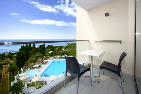 Suite: approx. 28 m², optionally bookable with balcony facing the park or with sea view.