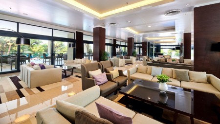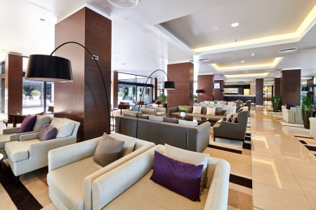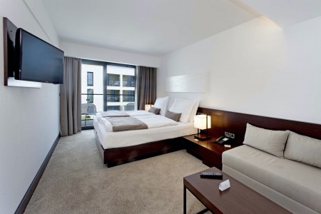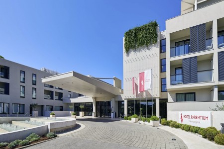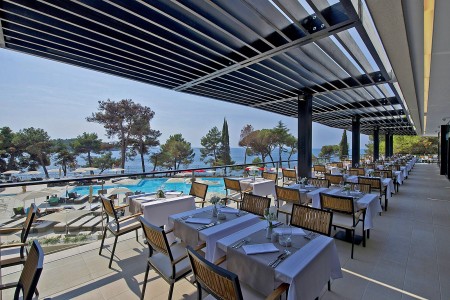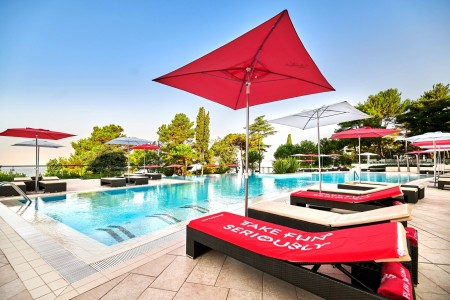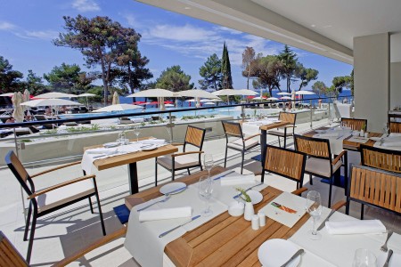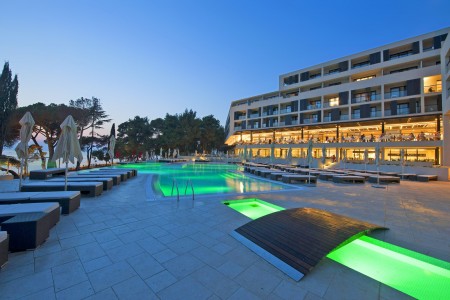 Facilities: Two themed restaurants with outdoor terraces, à la carte restaurant, lounge bar, pool bar, various stores, souvenir store, hairdressing salon. Seawater swimming pool and heated freshwater swimming pool with sun terraces and sun loungers (free of charge, limited number), freshwater indoor pool and whirlpool, pool towels available for a deposit. During the season (late May to early September), various entertainment programs for adults and sports tournaments are organized, as well as a varied evening program with live music and shows. Animation room, conference rooms, storage room for bicycles, guarded parking lot (for a fee, € 1.50 per day). There are various restaurants, bars and stores in the immediate vicinity of the hotel. The Zelena Laguna resort is connected to the old town of Poreč by a mini-train and a boat line during the season. WiFi internet available throughout the hotel (free of charge).