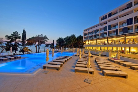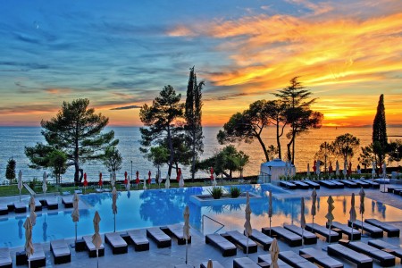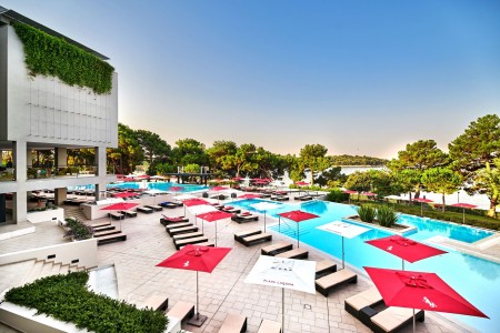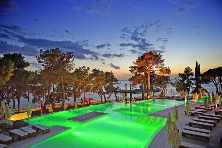 Sport: The resort is home to Croatia's largest sports center - 18 clay tennis courts (four of which are floodlit), 3 Colorset tennis courts, tennis school, table tennis, four grass soccer pitches, large sports hall, four squash courts, fitness center, bocce courts, basketball, volleyball, mini golf, bicycle rental, horseback riding, paddle, pedal, sailing and motor boats, water skiing, parasailing, banana boats, diving school and much more. In the high season, the resort offers various entertainment programs for all hotels - children's entertainment, sports entertainment with aerobics and various tournaments, as well as evening entertainment with shows.