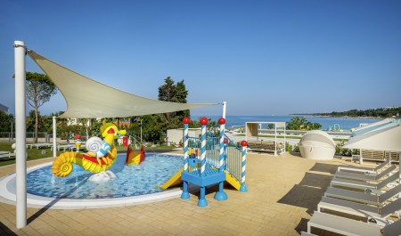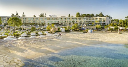 Surrounded by fragrant pine trees and located directly on a beautiful beach that has been awarded the Blue Flag, the resort offers all the amenities for an upscale family vacation. In addition to extremely comfortable accommodation, you can expect a spacious outdoor area with several pools, sun terraces and beach bars as well as culinary highlights for discerning gourmets. The picturesque old town of Poreč is approx. 10 minutes' walk away.