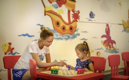 Beach: The newly created beach "Val Marea Family Beach" with beach bar and beach club, sunbathing lawns, sandy sections and concrete sunbathing areas, parasols and sun loungers (free of charge, limited number), showers and changing rooms as well as a children's playground is approx. 80 m away.