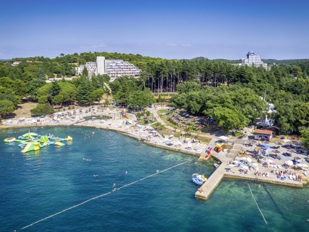 Sport: Beach volleyball and bike rental. Multi-purpose sports hall for basketball, handball, soccer etc. in the neighboring Valamar Diamant Hotel. In the Brulo resort you will find 18 clay tennis courts, tennis school, table tennis, mini golf, paddle boats, pedal boats and motor boats. The diving center 200 meters away offers diving courses from May to October and diving equipment rental.