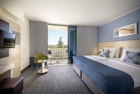 Facilities: Hotel restaurant with show cooking, congress hall, various seminar rooms, lobby bar, ATM, newspaper and souvenir store, reading room with books and tablets, children's playground, freshwater swimming pool with separate children's pool, large terrace, snack bar, sun loungers and parasols (limited number, included in the price), heated freshwater indoor pool with sun loungers. Heated seawater swimming pool with separate children's pool at the neighboring Valamar Crystal Hotel. Animation program for adults with a wide range of sports and evening entertainment (mid-June to end of August). Babysitting service available on request (for a fee). Entertainment for children of different age groups in the Maro Club from mid-June to the end of August (Mini Club 3-6 years, Maxi Club 7-12 years). Bicycle storage and washing area for bicycles. Partially shaded parking lot (for a fee; approx. € 3 per day). WiFi internet available throughout the hotel (free of charge).