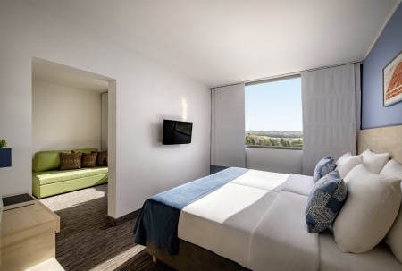 Sport - for a fee: Valamar Sport Point nearby with mini golf, table tennis, beach volleyball, bike rental and various water sports, as well as 16 clay tennis courts and tennis school. The diving center 200 meters away offers diving courses from May to October and diving equipment rental.