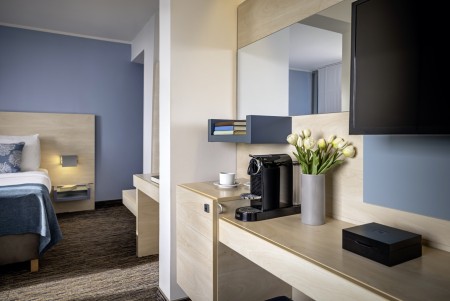 244 rooms: with air conditioning, telephone, WiFi internet (free of charge), LCD TV, safe, minibar and shower/WC. Baby crib available on request (for a fee, €5 per day).