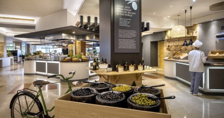 Meals: Extensive breakfast buffet. Half board PLUS with evening buffet with show cooking bookable for an extra charge. Themed dinners several times a week.