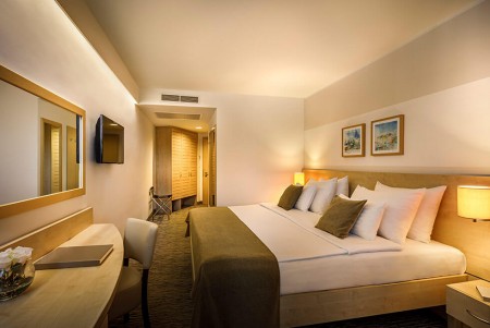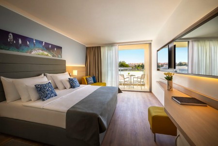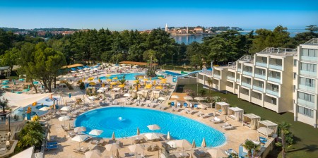 Sport: A modern, 24/7 fitness center, table tennis, and a Stay-Fit program featuring various group activities, including outdoor, yoga, stretching, and aqua programs. Next to the hotel is the Bike Center Poreč and Cycling Park (both for a fee), featuring bike rentals, a bike repair shop, a 570 m² pump track, and circuits for adults and children. About 700 m from the hotel is the Pical Tennis Center (for a fee) with 15 clay courts.
