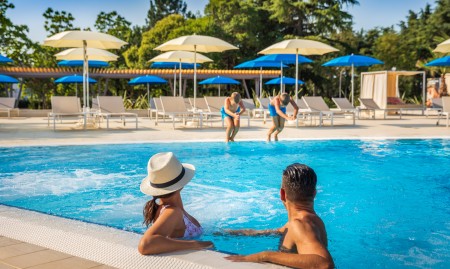 Beach: The "Val Parentino Family Beach"—a rocky and pebble beach with shaded lawns, concrete and sandy sunbathing areas, a barbecue restaurant, a snack bar, and a lounge bar—is 300 meters away through the woods. Deck chairs, umbrellas, and beach cabanas are available for a fee.