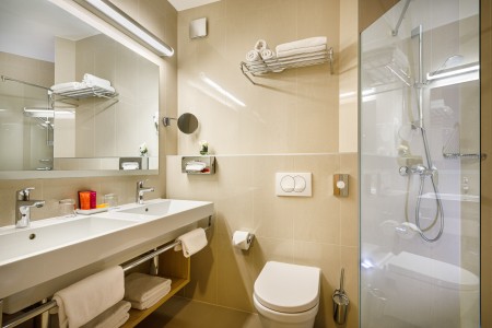 Premium Family Suite: approx. 32–41 m², located in the new wing, one bedroom with a double bed, separate living area with two daybeds (sofas, each 80x190 cm), shower/toilet, balcony.