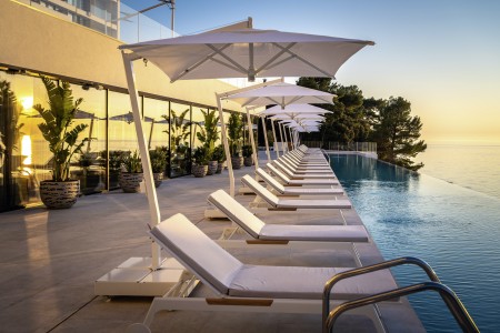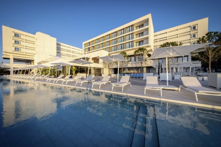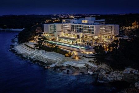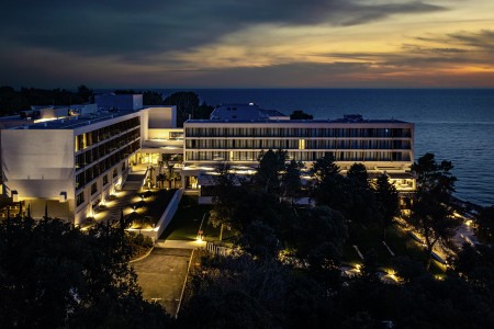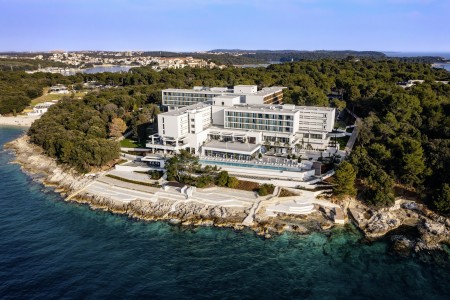 The beach hotel offers modern comfort amidst lush vegetation. It is located not far from Pula within the Punta Verudela complex and has direct access to the water via several terraced sunbathing areas.
