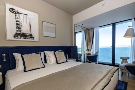 Collection room: approx. 23 m², for max. 2 people, French balcony with either garden or sea view.
