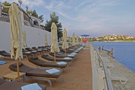 Beach: The rocky beach with stone areas, sunbathing lawns, beach bar and restaurant is about 50 m away.