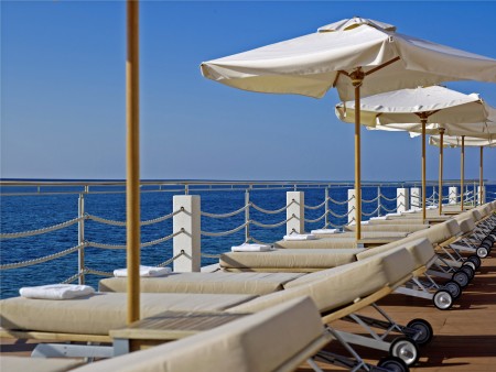 Suite: approx. 38-45 m², one bedroom, separate living room with sofa bed, bathroom with massage shower, high-quality coffee machine, Bose sound dock system, iron and ironing board as well as slippers and bathrobes and balcony facing the sea. Fresh fruit and water on arrival.