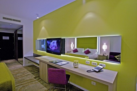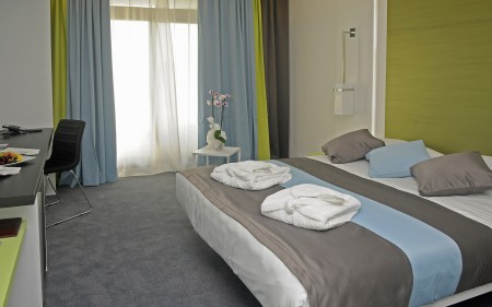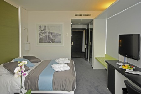 368 rooms: renovated and comfortably furnished, one double bed (180x200 cm) or two single beds (90x200 cm each), with air conditioning, coffee/tea maker, safe, telephone, WiFi internet (free of charge), LCD TV, shower/WC and balcony.
