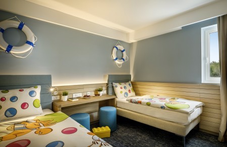 Girandella Maro Suites: a total of 149 suites, modern, stylish and exclusively furnished with air conditioning, 2x LCD satellite TV, safe, mini-fridge, telephone, kettle for tea and coffee, WiFi internet (free of charge), changing table, bathroom with bath and shower, separate WC and balcony. All suites are equipped with safety sockets and baby monitors. These accommodation units can only be booked with at least 1 child.