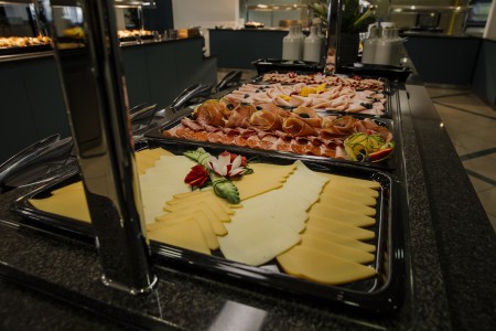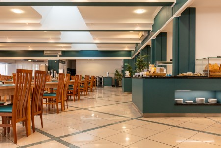Catering: Breakfast buffet. Half board with evening buffet bookable for an extra charge. From 05.06.-05.09. full board "all inclusive" with lunch and dinner buffet is also offered.