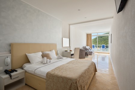 The terraced hotel, which forms a hotel complex with the Mimosa-Lido Palace and Narcis hotels, is located in the sheltered "Maslinica" bay not far from the small town center.