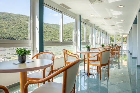 The terraced hotel, which forms a hotel complex with the Mimosa-Lido Palace and Hedera hotels, is located in the sheltered "Maslinica" bay not far from the small town center.