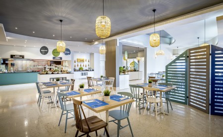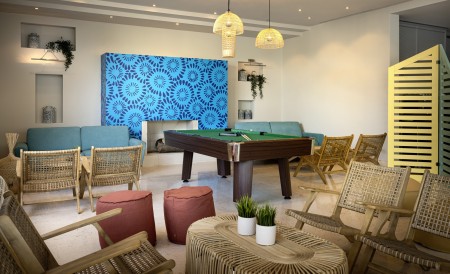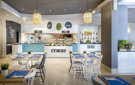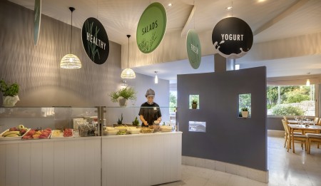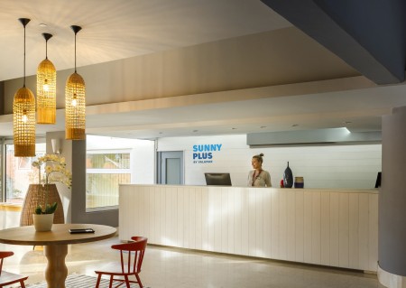 270 rooms: Renovated for the 2024 season and furnished in a modern style, they have a double bed or two single beds, air conditioning, LCD TV, telephone, safe, bathroom with shower/WC and hairdryer. Baby crib is available on request (for a fee, €5 per day).