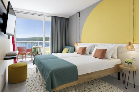 Double room with sofa: approx. 16-20 m², with additional pull-out sofa (80x200 cm) and balcony, can be booked either facing the park or the sea.