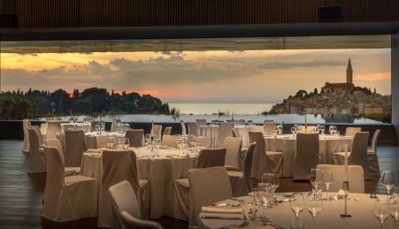 The Grand Park Hotel Rovinj, which opened in spring 2019 and is a member of the "Leading Hotels of the World", is situated in a unique location directly above the marina with a magnificent view of the old town of Rovinj. In addition to luxuriously furnished rooms, you will find a modern wellness and spa area, three pools on the fifth floor of the hotel and a first-class offer for discerning gourmets in four different restaurants, including the restaurants "Agli Amici Rovinj" and "Cap Aureo", which have been awarded by the Michelin Guide 2025. The charming town center of Rovinj is only a few minutes' walk away.
