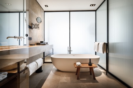 209 rooms: modern and very comfortably furnished, all rooms offer air conditioning, Smart TV, telephone, WiFi Internet (free of charge), USB charging port, minibar, safe, bathroom with bathtub, walk-in rain shower and WC, balcony or terrace. Also kettle and espresso machine. 24-hour room service. Baby crib available free of charge on request.