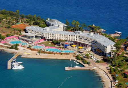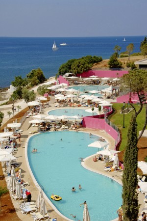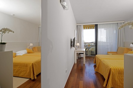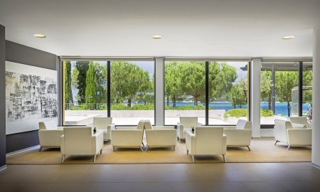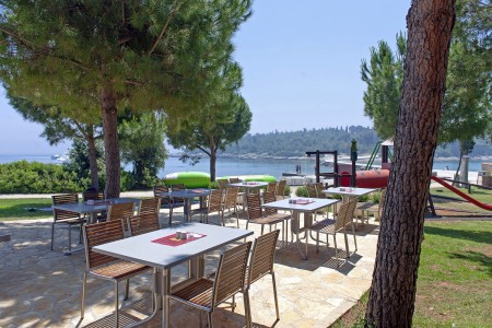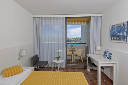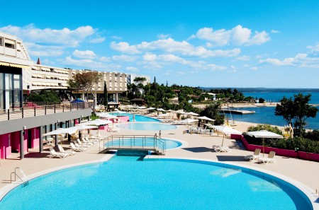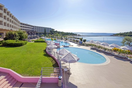 Facilities: Buffet restaurant, à la carte restaurant "La Serra AD 547", pizza and pasta restaurant "Basilico", "Lavanda" grill, bistro "Allegro", three bars, café, lounges, entertainment terrace, kiosk, store with sportswear and beach equipment, freshwater indoor pool, one seawater and one freshwater swimming pool with children's pool, sun terrace, parasols and sun loungers (included, limited number), small marina. Animation program for adults in high season on the outdoor stage or in the hotel, as well as children's club in age-appropriate groups - Baby Club from 0-4 (only in the presence of a parent) and Mini Club from 4-12 years (seasonal). Guarded parking lot on the mainland, approx. 1,000 m from the boat landing stage. There is also a reception at the jetty for guests arriving by car. WiFi internet available throughout the hotel (free of charge).