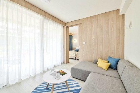 A total of 54 rooms and suites: The Garden Suites Umag Plava Laguna are located in 11 two-storey buildings. All accommodation units offer air conditioning/heating, satellite TV, telephone, free WiFi internet, minibar, safe, bathroom and balcony or terrace. Baby crib available free of charge on request.