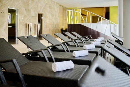 Wellness-Center: "The Body Holiday" (for a fee): On two levels and a total area of 1000 m². Turkish sauna, Finnish sauna, bio sauna with aromatic herbs, wet salt sauna, whirlpool for 12 people, gym (free of charge) and relaxation room.