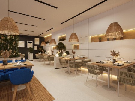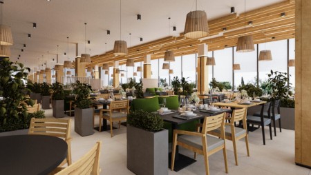Facilities: Buffet restaurant with show cooking and healthy corner, lobby bar, beach club with bar (open seasonally), à la carte restaurant "Mediteran", conference center with three rooms for 160-24 people, hairdressing salon, ATM. Indoor seawater pool, two seawater swimming pools, sun terrace with pool bar, sun loungers and parasols (free of charge, limited number) and canopy beds in the relaxation zone (for a fee). Sports entertainment with various fitness programs, evening entertainment with live music (end of May to beginning of September). Parking directly in front of the hotel for a fee (approx. € 6 per day; limited number) as well as two e-car charging stations (for a fee), further parking spaces are located near the hotel (approx. € 1.20 per day). Internet corner and WiFi internet in the hotel complex (free of charge).