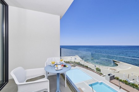 Premium double room: approx. 22 m², with additional sofa bed (90x200 cm), balcony facing the sea.