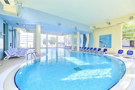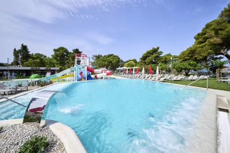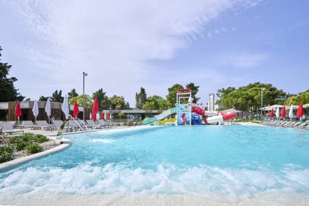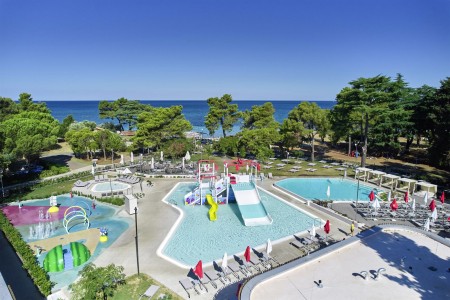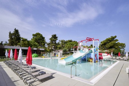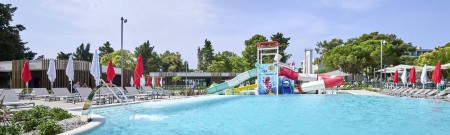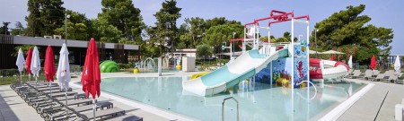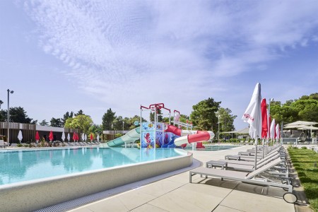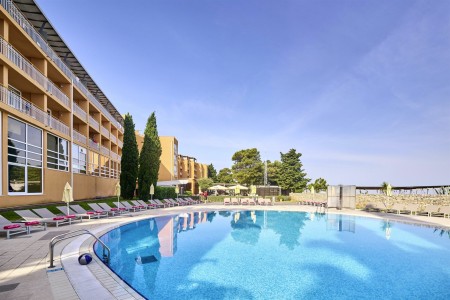 Facilities: Lobby with reception and aperitif bar, buffet restaurant with show cooking, à la carte restaurant "León d'Or", café terrace with bar, hairdressing salon, ATM, freshwater swimming pool with separate children's pool, bar, sun loungers and parasols (included in the price, limited number), freshwater indoor pool (closed mid-June to mid-September). Evening entertainment program with theme evenings, shows and live music (end of May to beginning of September). Children's entertainment in the miniclub for children aged 5-12 from the end of May to the beginning of September. Separate building with meeting center for conferences and workshops from 20 to 100 people. Storage room for bicycles. Parking lot for a fee (approx. € 1.50 per day). Internet corner available (free of charge), WiFi internet available in the lobby and reception area (free of charge). Room service available. Swimming pool complex "Punta Pool" for guests of the Umag and Sipar hotels. In addition to three pools with sun terrace and sun loungers, spray park, game room, summer cinema and children's playground, there is a varied entertainment program with age-appropriate activities for children and adults.