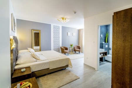 Deluxe family room: approx. 33 m², with 2 bathrooms, balcony and sea view.
