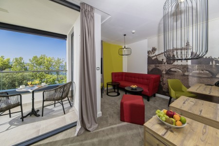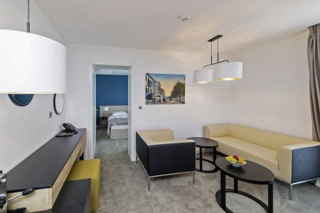 Premium Suite: approx. 37 m², one double room and a separate living room, facing the sea.