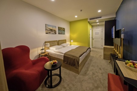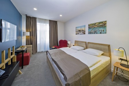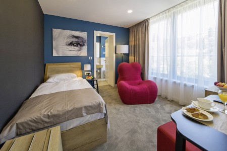 38 rooms: all rooms and suites have air conditioning, LCD TV, safe, minibar, telephone, WiFi Internet (free of charge), desk, bath or shower/WC, balcony or terrace. Baby crib available free of charge on request.
