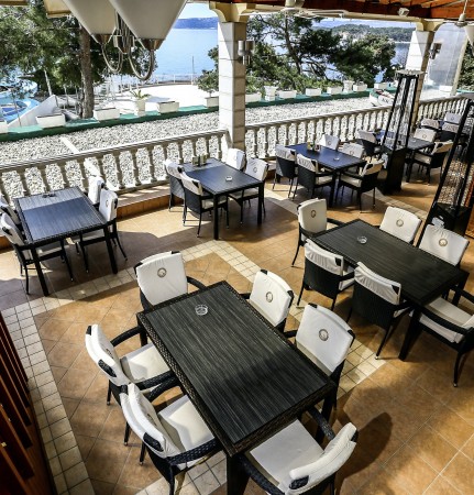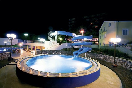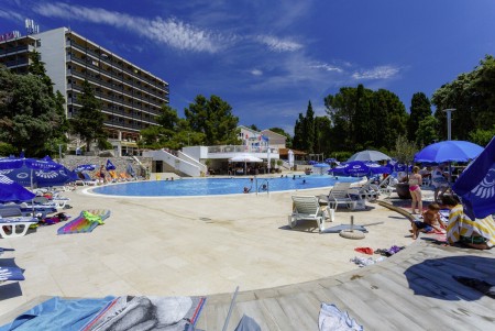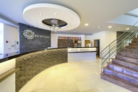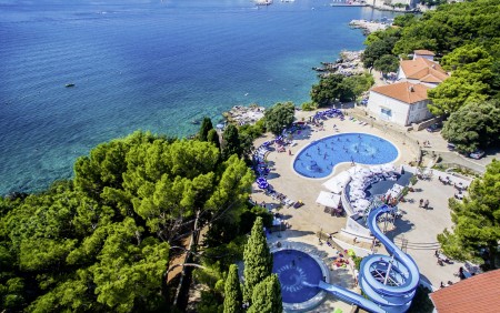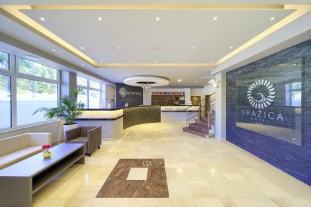 Facilities: Reception, exchange office, souvenir store, air-conditioned buffet restaurant and à la carte restaurant with terrace in Hotel Dražica, bar in Villa Lovorka, cocktail bar with terrace, pool bar, freshwater swimming pool for adults, freshwater swimming pool with aquagun for children, sun terrace with sun loungers and parasols (for a fee). In season, evening entertainment program with live music and dancing, all-day entertainment program for children and adults (July to August). WiFi internet available throughout the hotel complex (free of charge). Parking in the hotel complex (free of charge).