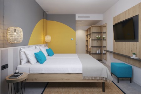 194 rooms: Renovated for the 2024 season and furnished in a modern style, they have a double bed, air conditioning, LCD TV, safe, hairdryer and shower/WC. Baby crib is available on request (for a fee, € 5 per day).