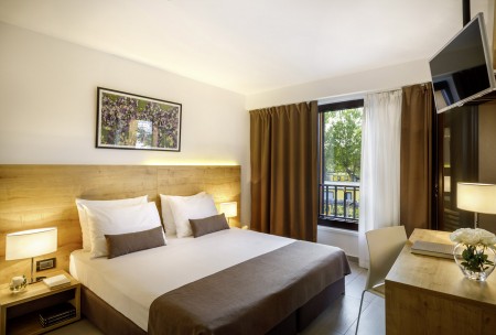 19 rooms: elegant, modern and tastefully furnished with air conditioning, telephone, WiFi internet (free of charge), LED SAT-TV, fridge, safe, desk, balcony, bath or shower/WC and hairdryer. Baby crib available on request (for a fee, € 5 per night).