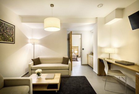 Suite Standard: approx. 37 m², one bedroom with double bed, living room with double sofa bed (160 x 200 cm), bathroom with shower and WC.