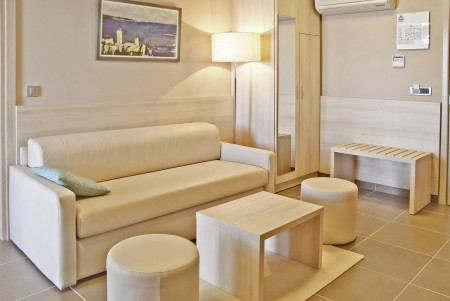 86 rooms: modern furnishings, all rooms and suites have satellite TV, air conditioning, telephone, shower/WC and balcony. Baby crib available on request for a fee (€5 per night).