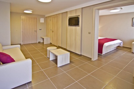 Junior family suite: approx. 37 m², one double room, living room with sofa bed for two people, one bathroom, balcony. Extra bed for one person available.