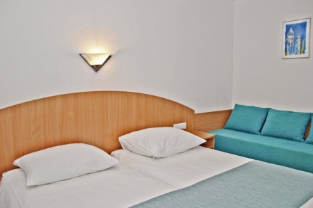 Facilities: Air-conditioned central restaurant, aperitif bars, magazine and souvenir kiosk, café, terrace, evening entertainment program for children and adults with live music and animation shows (seasonal). At the sports and entertainment center on the beach you will find a grill restaurant, snack bar, a small market with fruit, vegetable and souvenir stalls, supermarket, newspaper kiosk, store with beach and sports articles, ice cream stand and dance terrace. There is a marina about 400 m away. There are various stores and a disco in the sports center 500 m away. Parking on the hotel grounds (free of charge). Internet corner available at the receptions of the Plaža and Lopar hotels (for a fee), WiFi internet available in the reception/lobby area (free of charge).