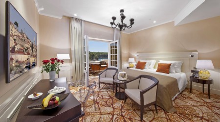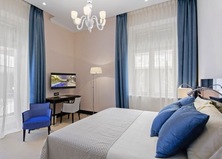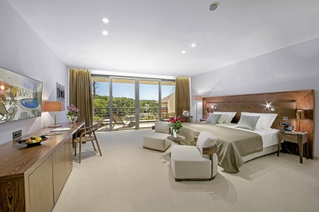 Double room deluxe: approx. 32-52 m², mostly with balcony. Optionally bookable with a view of the Čikat forest park or with a sea view.