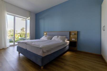 Quad room: approx. 25 m², located on the first floor, double bed and bunk bed, terrace with garden view.