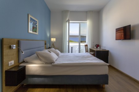 Superior room: approx. 25 m², double bed, balcony or terrace with sea or garden view.