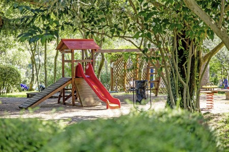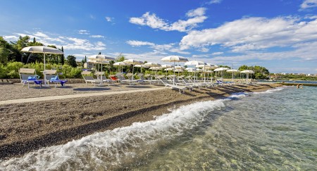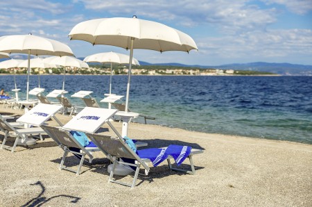 Beach: The beach with concrete areas, fine gravel, partly sandy seabed, parasol and sun lounger hire, children's playground, restaurant and beach bar is around 70 m away via steps and paths through the forest.